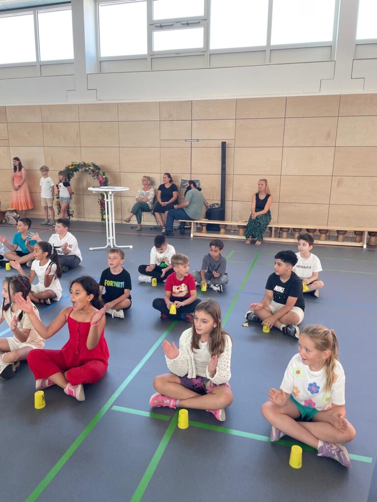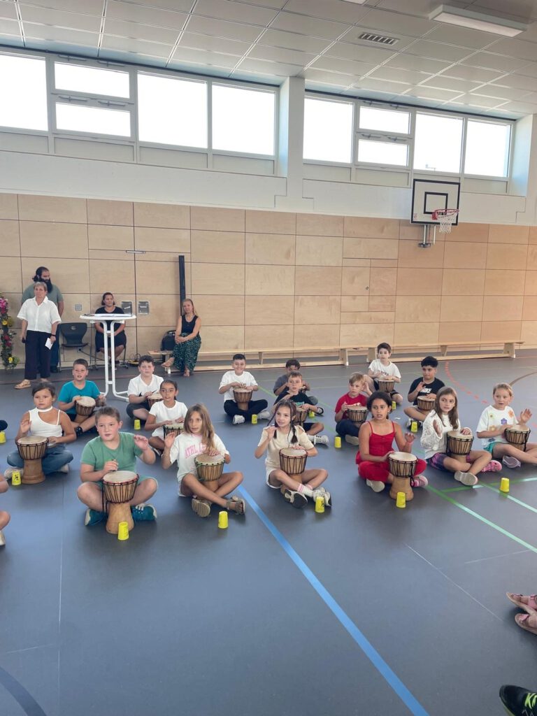 Zu diesem besonderen Anlass hießen die Schulleitung und Vertreter des Schülerparlaments alle Kinder und ihre Familien herzlich willkommen. Für einen festlichen Auftakt sorgten die Patenklassen mit Trommel- und Becherpercussion, die für beste Stimmung sorgten. Anschließend durften die neuen Erstklässler feierlich durch einen Rosenbogen laufen. Dies ist jedes Jahr ein besonderer Moment für alle. Im Anschluss wurden die Kinder von ihren Klassenlehrerinnen Frau Heinz und Frau Thorsch herzlich empfangen und in ihre neuen Klassen begleitet. Währenddessen verweilten die Eltern bei Kaffee, Kuchen und kalten Getränken. Für das leibliche Wohl sorgte dabei liebevoll die Elternschaft der zweiten Klassen.