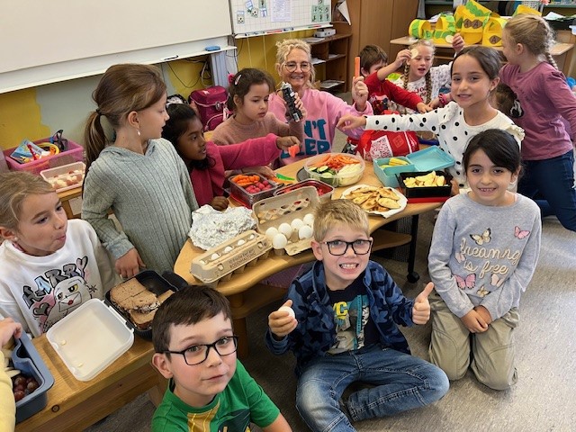 Nach langer Pause hat am 2. Oktober endlich wieder unser gesundes Schulfrühstück stattfinden können. Mit sehr viel Begeisterung haben die Kinder in den ersten beiden Stunden in ihren Klassen Speisen für das Frühstücksbuffet zubereitet. Nach der Pause und einem gemeinsam gesungenen Lied freuten sich alle auf das gemeinsame Frühstück.