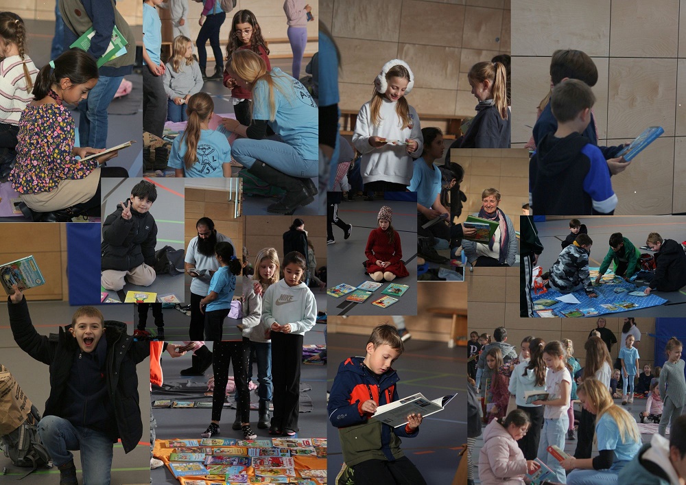 In allen Klassen hörten die Kinder gespannt den Geschichten zu, die von Eltern und Lehrkräften während des Unterrichts vorgelesen wurden. Im Anschluss fand unser traditioneller Bücherflohmarkt statt, bei dem die Kinder mit Begeisterung Bücher kaufen, verkaufen und tauschen konnten.